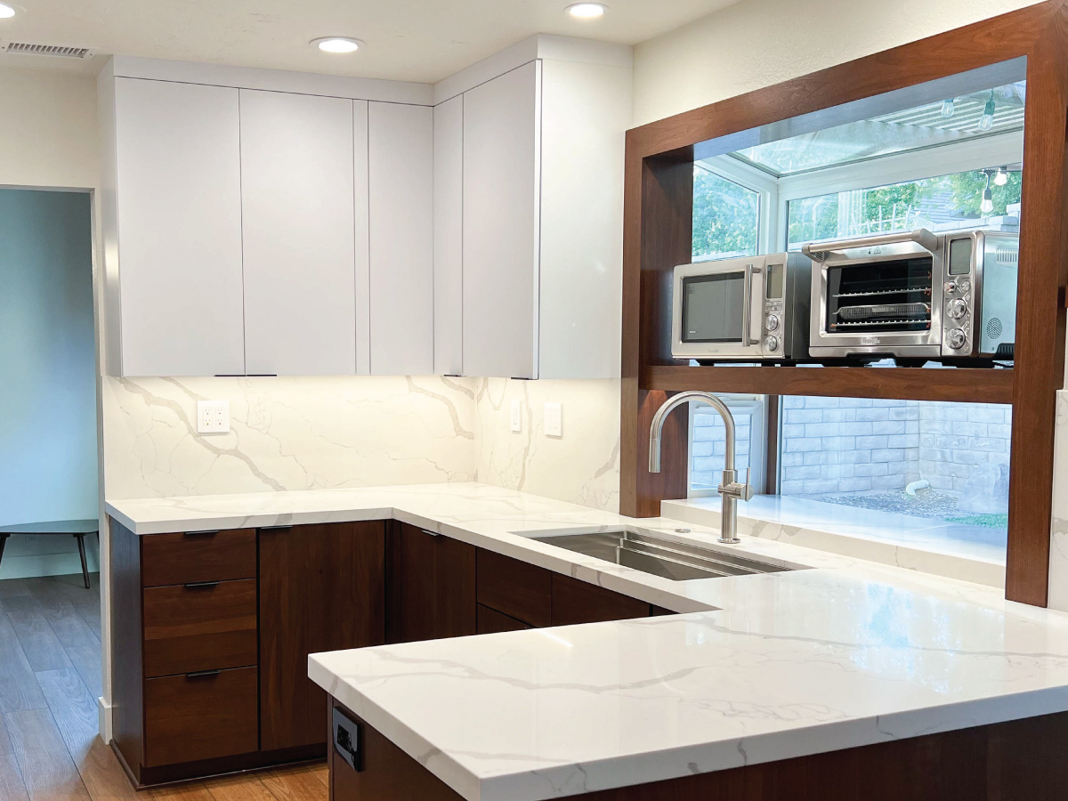 White & Walnut Contemporary Kitchen Design | Lake Forest, Ca