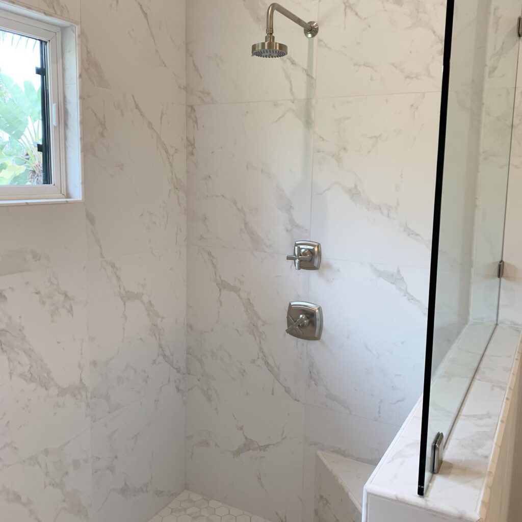 Now, this Laguna Beach shower remodeling added not only a niche but a glass shelf in the niche. There’s no limit to what Inspired Remodels can create. If you can imagine it, they can make your dream shower come to life.