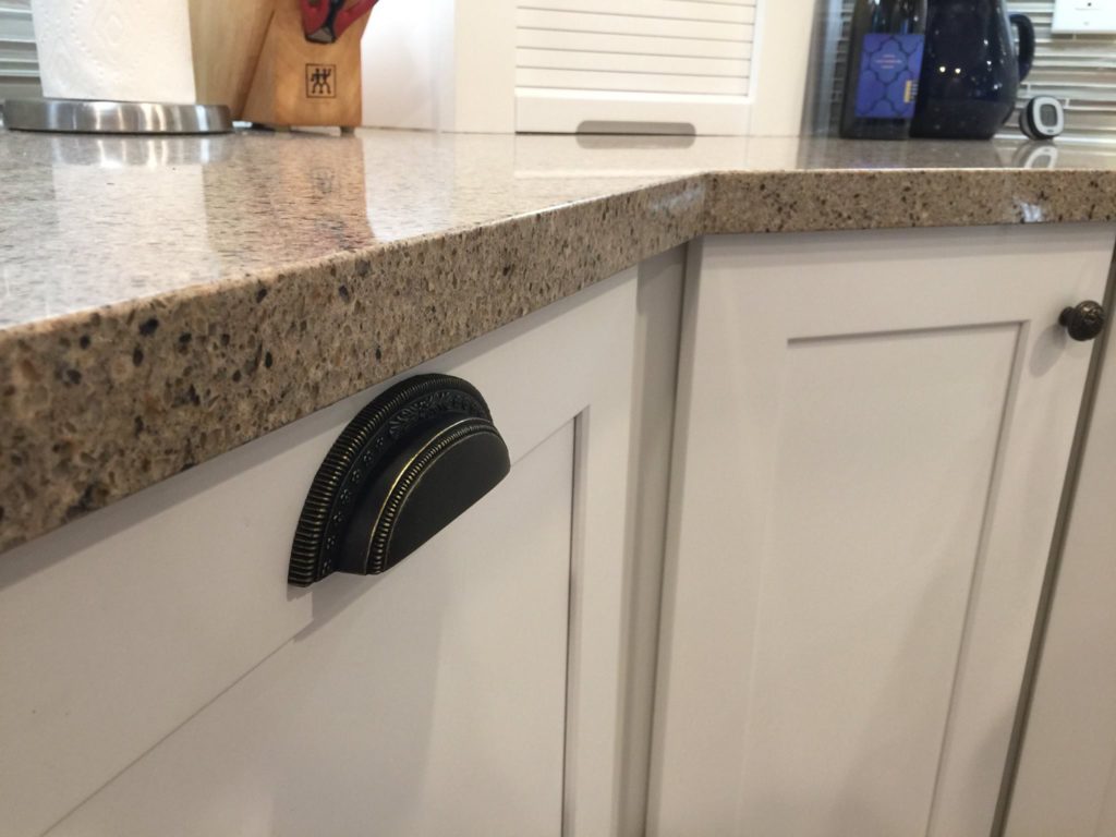 This Orange County custom kitchen remodel provides a large work area next to the sink and the cooktop is a mere pivot away. This design eliminates needless steps and utilizes the kitchen triangle design concept.